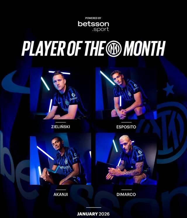 此外,国际米兰官方公布了1月份最佳球员候选名单,入选的有泽林斯基、皮奥·埃斯波西托、阿坎吉及迪马尔科四位球员。最终得主将由球迷投票和俱乐部共同决定,这也展现了俱乐部对这些关键球员的认可。